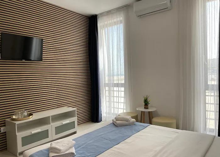 Está a 10 minutos a pie del centro de Mamaia y a 15 minutos en coche del Delfinario de Constanza desde este apartamento. El Parque acuático Aqua Magic se sitúa a unos 10 minutos en coche. Si no tiene ganas de cocinar después de un día ocupado, se sirve comida europea en Loft, a 300 metros del apartamento. Los huéspedes pueden explorar los vecindarios cercanos, como la Vega Beach y Apus De Soare. El aeropuerto internacional Mihail Kogalniceanu se encuentra a 30 km, mientras que la estación de autobuses la Tabara Nord está a 150 metros.